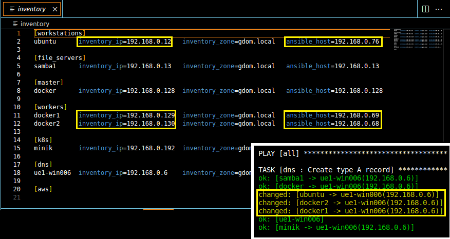 Storing the DNS and IPAM details for hosts defined in the Ansible “inventory” file, enables seamless configuration management by keeping the pertinent attributes in a consolidated, easy to manage location.